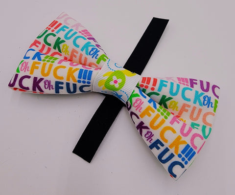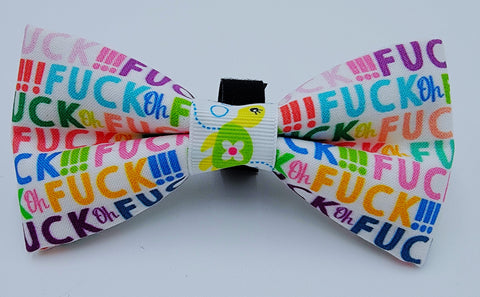 Our standard size dog bow ties measure 5" and have adjustable Velcro on the back to easily fit around pet collars and harnesses.